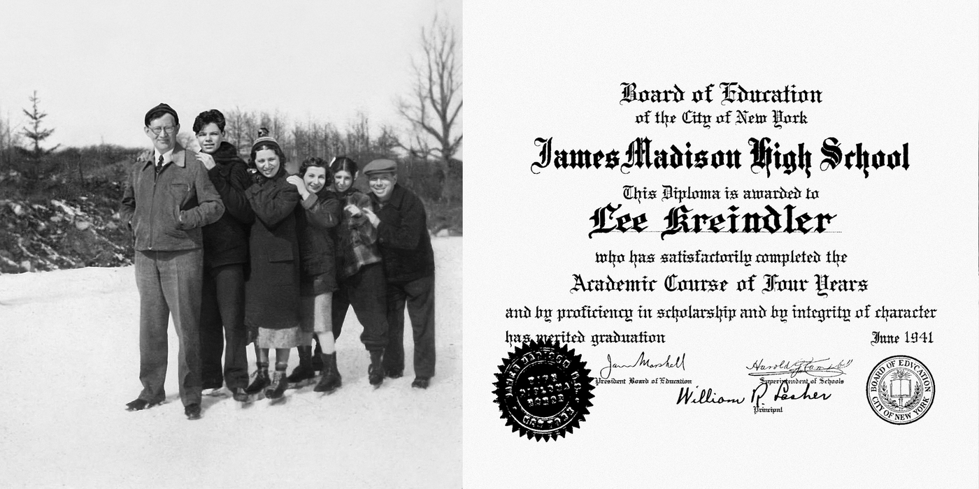 1941. Lee, shown in between his parents, graduated with honors from James Madison High School, Brooklyn, NY.