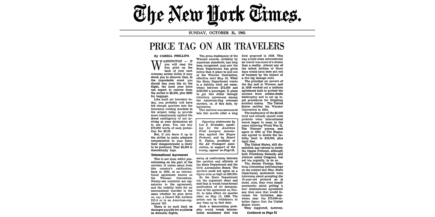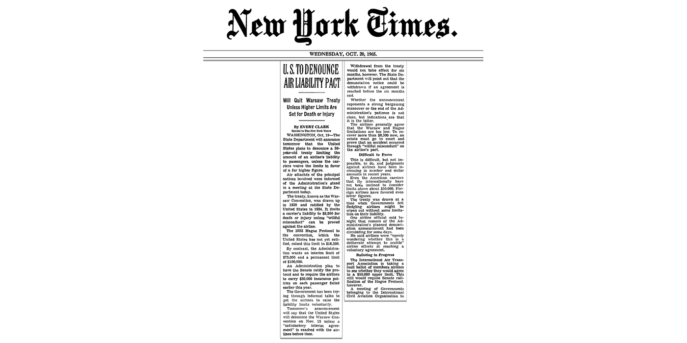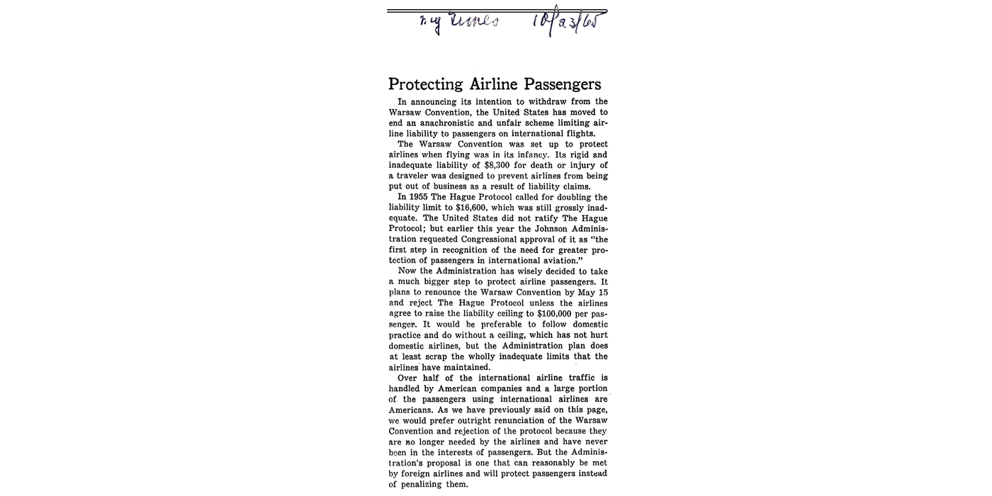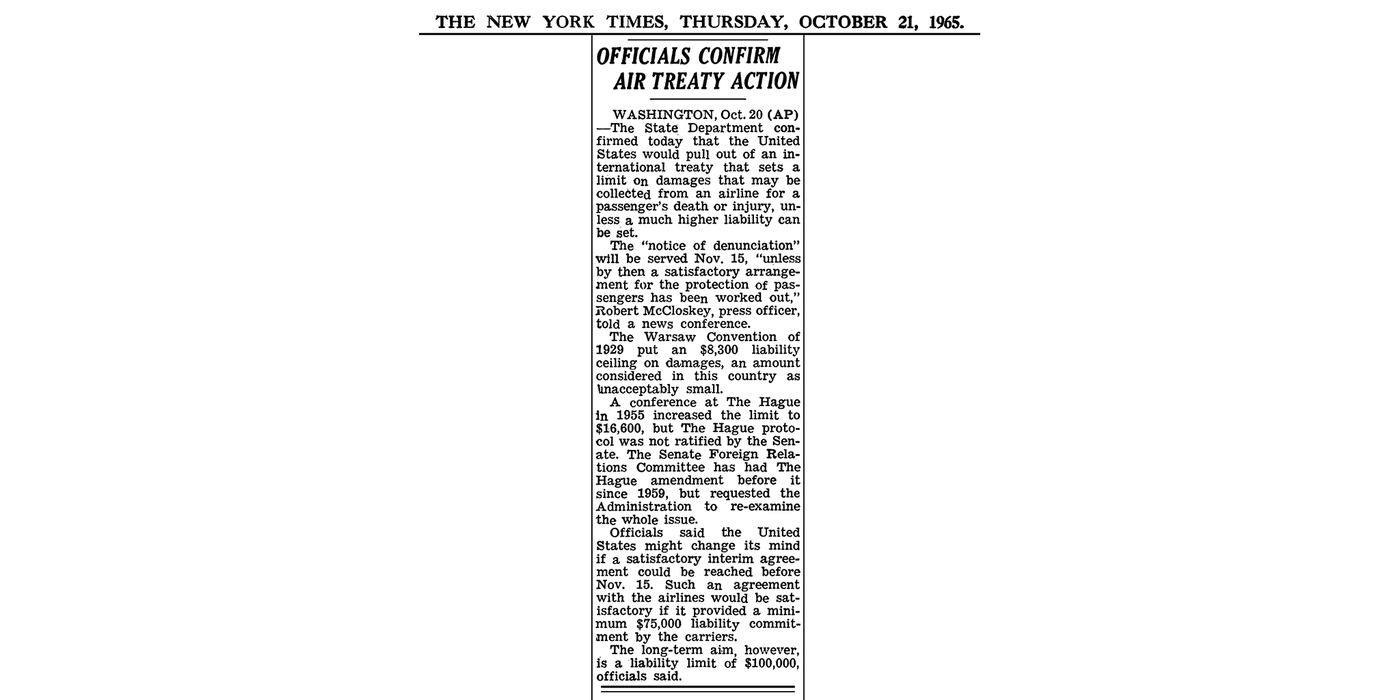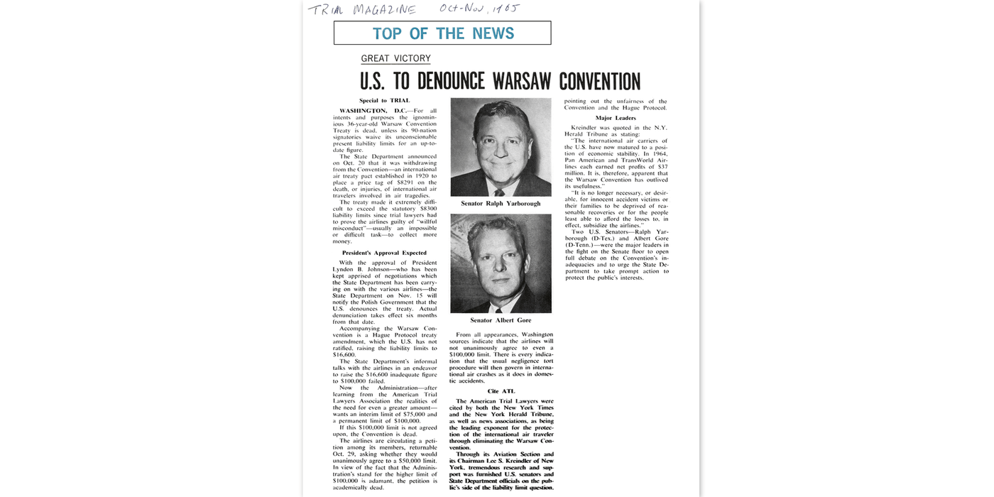October-November 1965: Trial Magazine. "the 36-year-old Warsaw Convention Treaty is dead".
