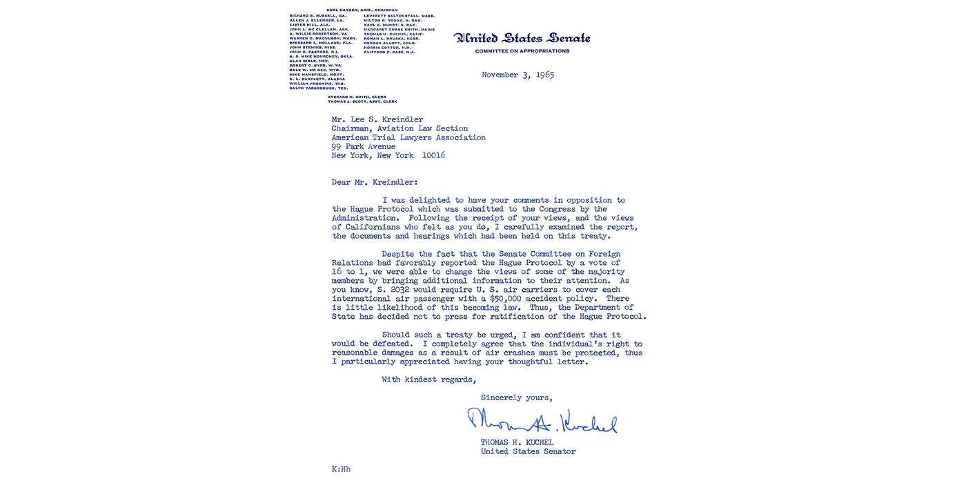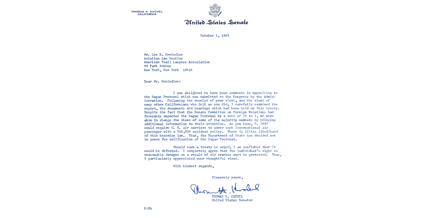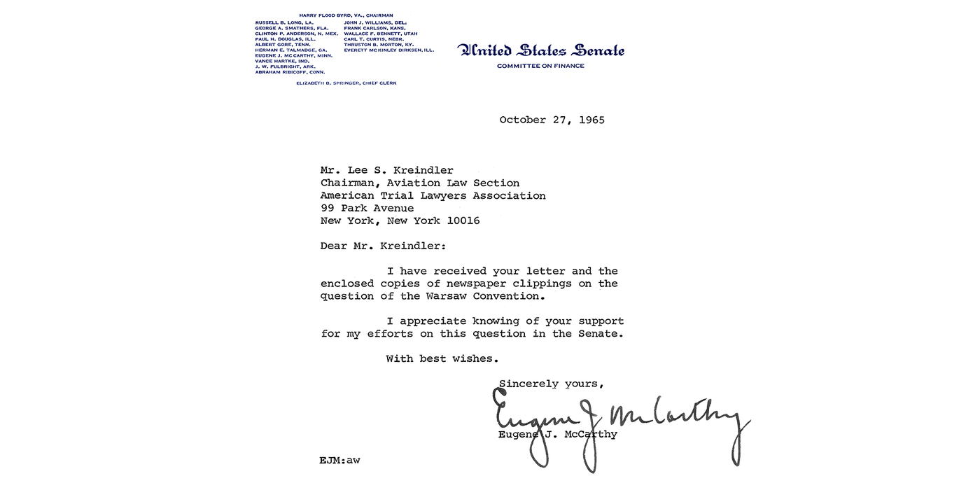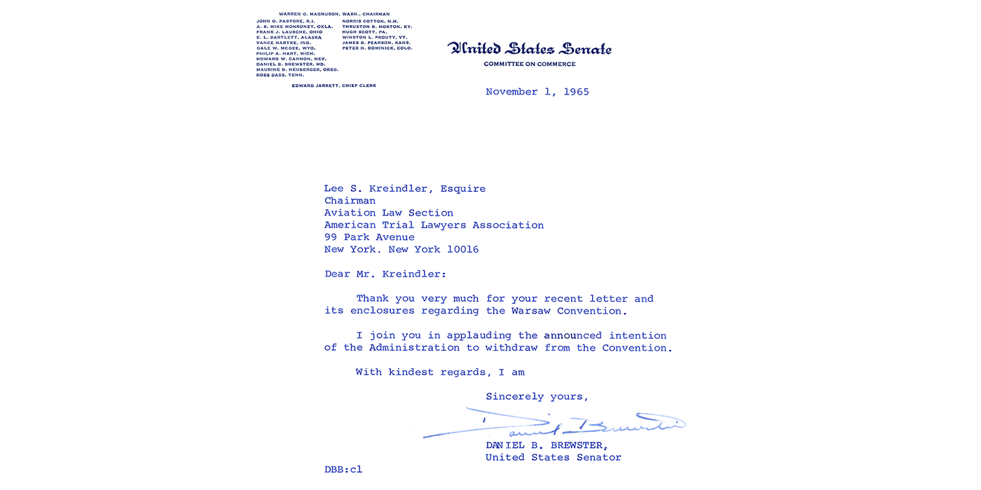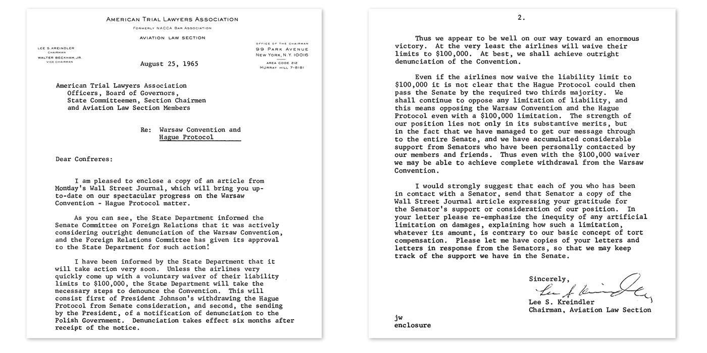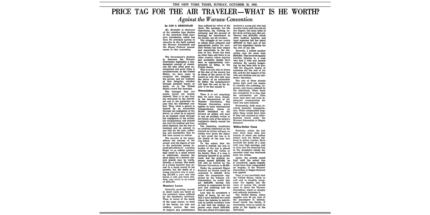 October-November 1965: Trial Magazine. "the 36-year-old Warsaw Convention Treaty is dead".