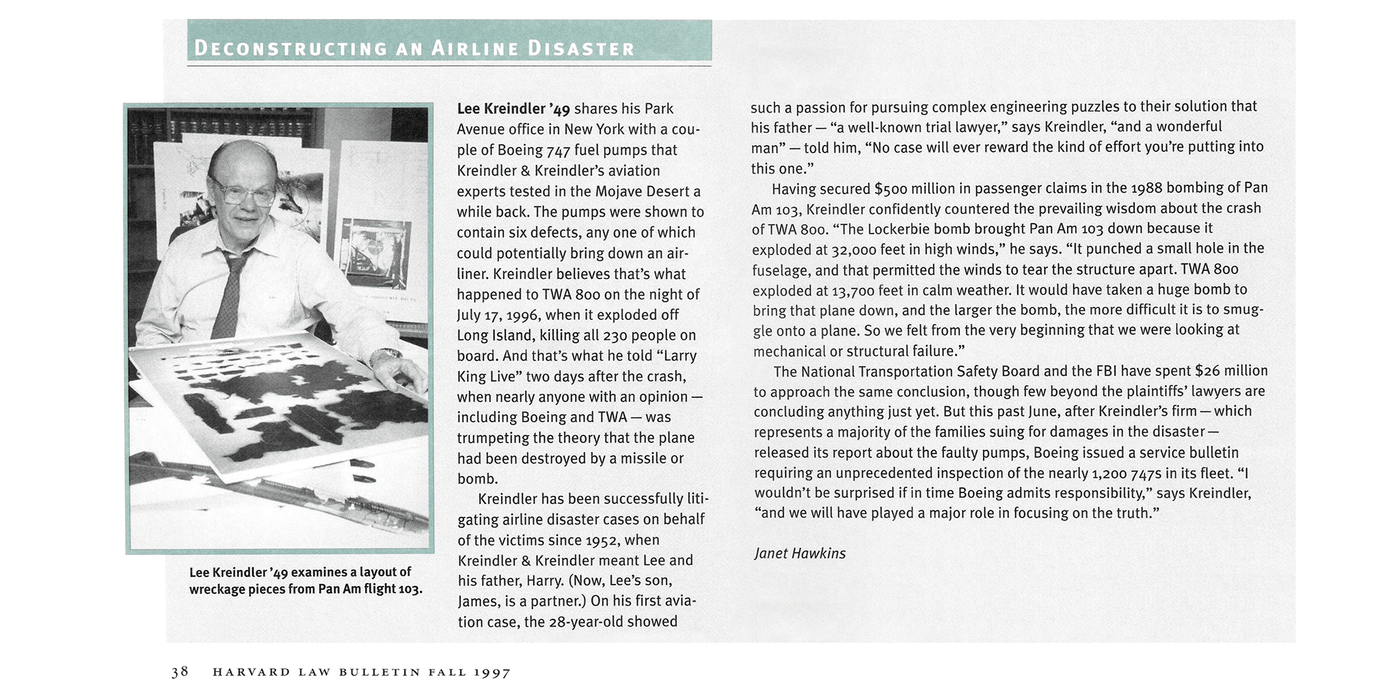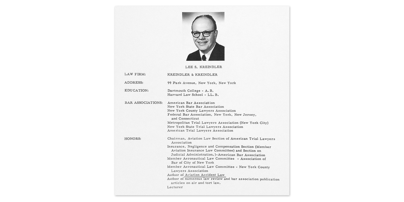 Harry E. Kreindler, Lee's dad, was a respected litigation attorney.