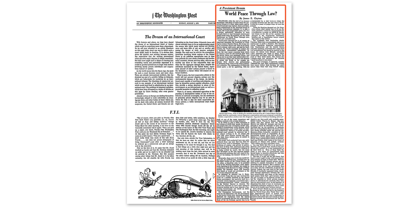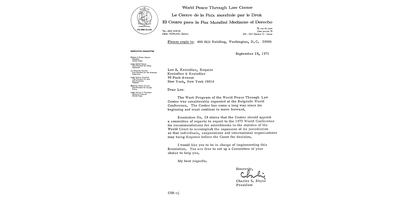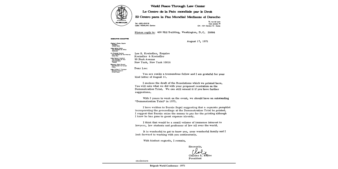 August 4, 1971. Charles S. Rhyne, President, World Peace Through Law Center.