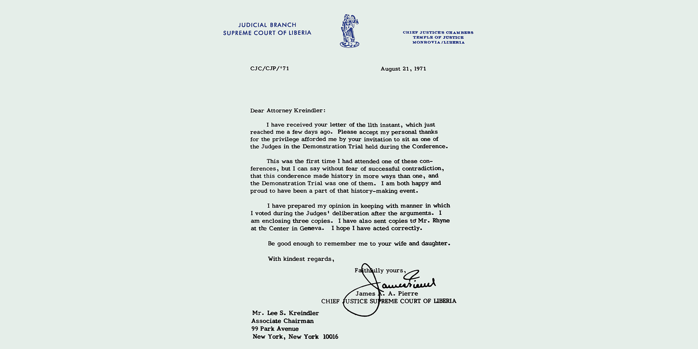 August 21, 1971. James A. A. Pierre, Chief Justice Supreme Court of Liberia.