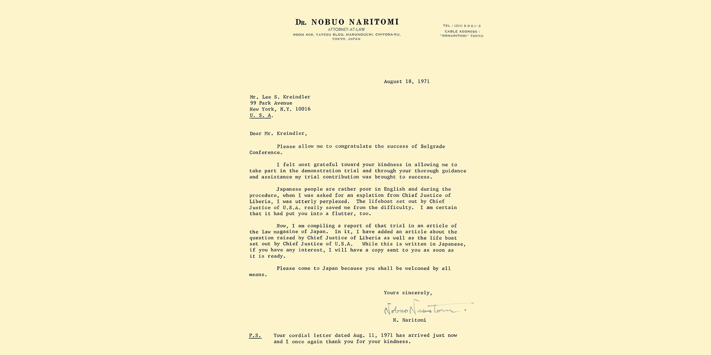 August 18, 1971. Dr. Nobuo Naritomi, Attorney-At-Law. Tokyo, Japan.