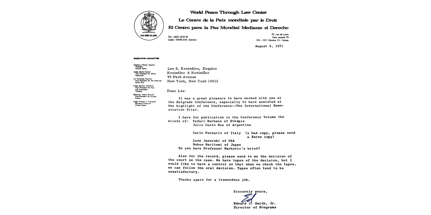 August 4, 1971. Edward J. Smith, Jr., Director of Programs, World Peace Through Law Center.