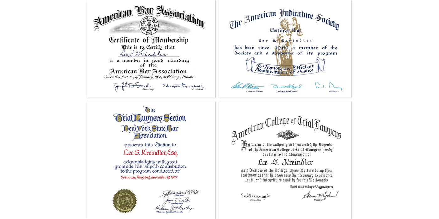 Including: the American Bar Association, the American Judicature Society, the Trial Lawyers Section of the New York State Bar and the American College of Trial Lawyers.