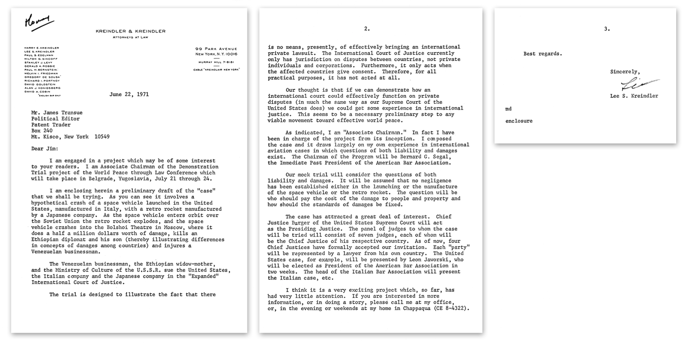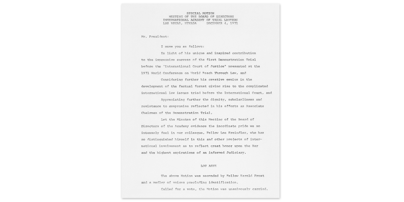 July, 1971: Lee Kreindler, Associate Chairman of the First International Demonstration Trial.