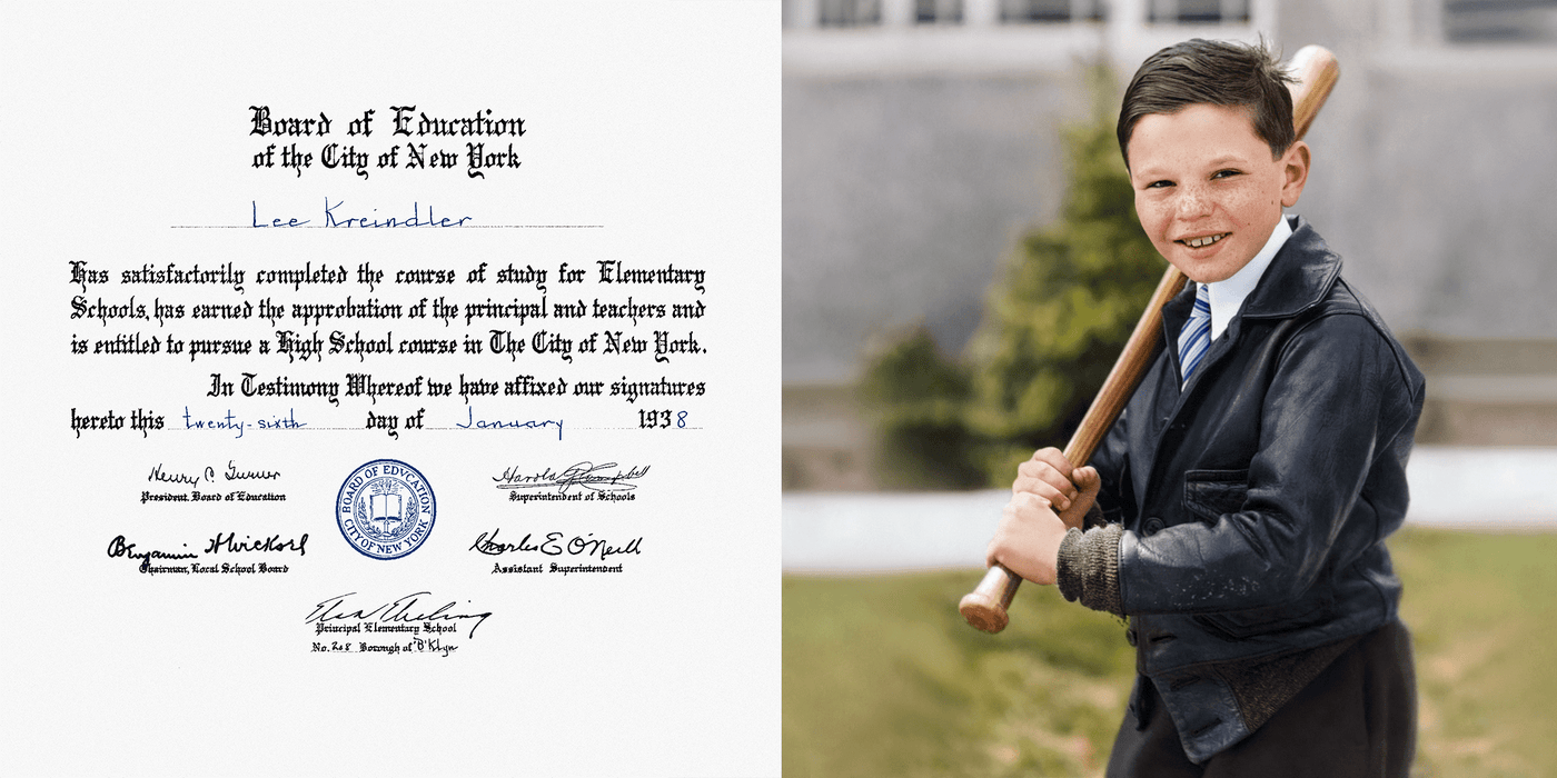 1938. Lee was a proud graduate of P.S. 208 elementary School. Brooklyn, NY.